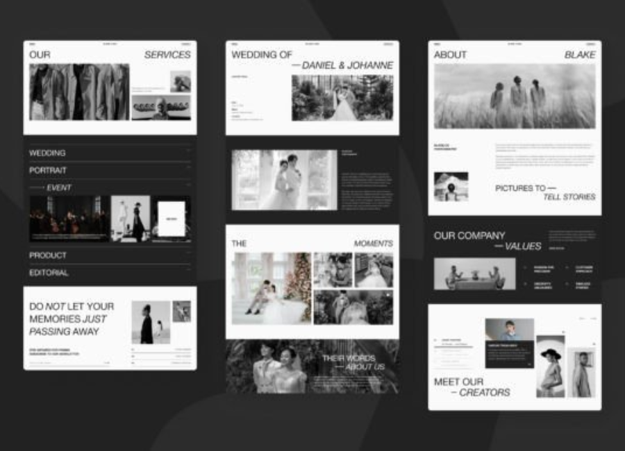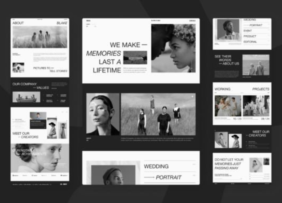 Minimalism is a defining characteristic of the Blake photography website. The design emphasizes simplicity, clarity, and elegance. White space is used strategically to guide the viewer’s eye and create a sense of balance across the pages.