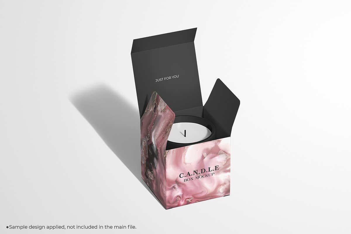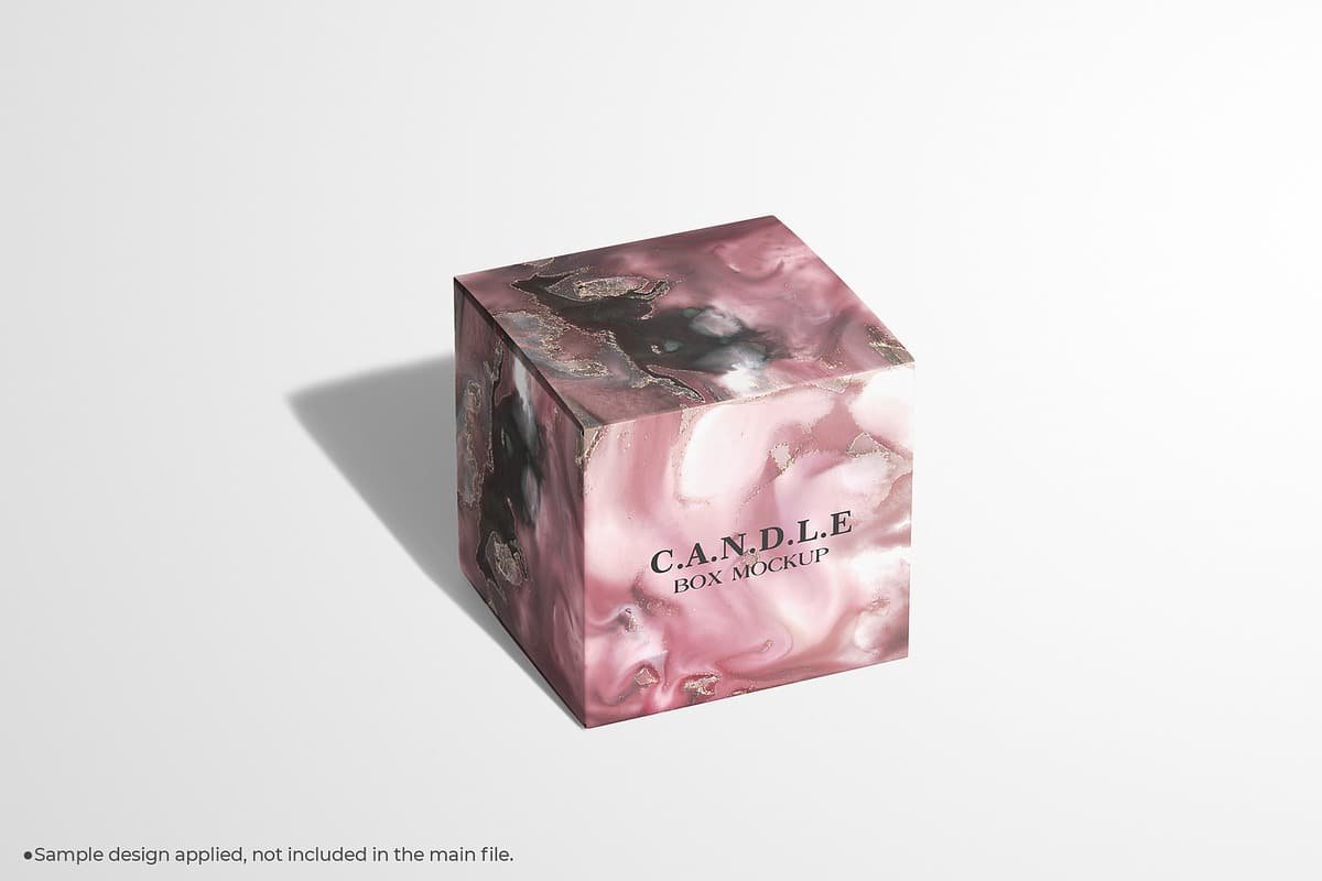 Most candle cube box mockups are designed with customization in mind. They often include smart object layers that allow designers to easily apply their artwork to the candle label and box surfaces. Lighting, shadows, and reflections are already built into the mockup, ensuring a realistic result without complex rendering work.