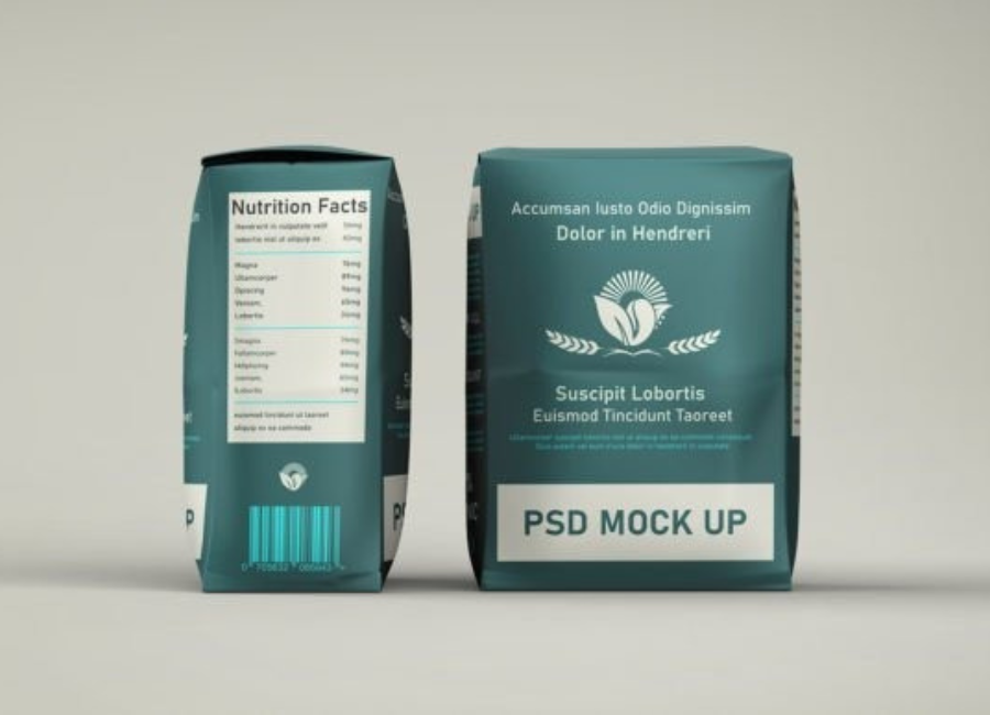 Food packaging often includes mandatory information such as nutritional values, weight, barcodes, and certifications. A flour bag mockup allows brands to check layout accuracy and readability before printing. This reduces the risk of errors and supports compliance with labeling standards.