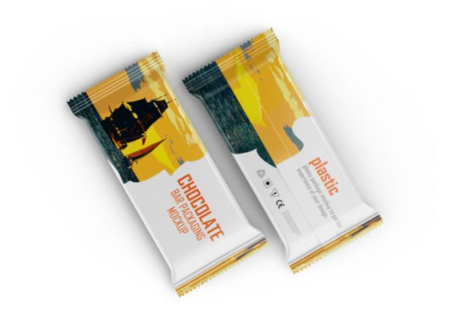 A Glossy Chocolate Bar Package PSD Mockup is a high-resolution Photoshop file designed to simulate a real chocolate bar wrapper with a glossy surface finish. It typically features realistic highlights, reflections, folds, and shadows that mimic laminated or foil-coated packaging materials commonly used in chocolate branding.