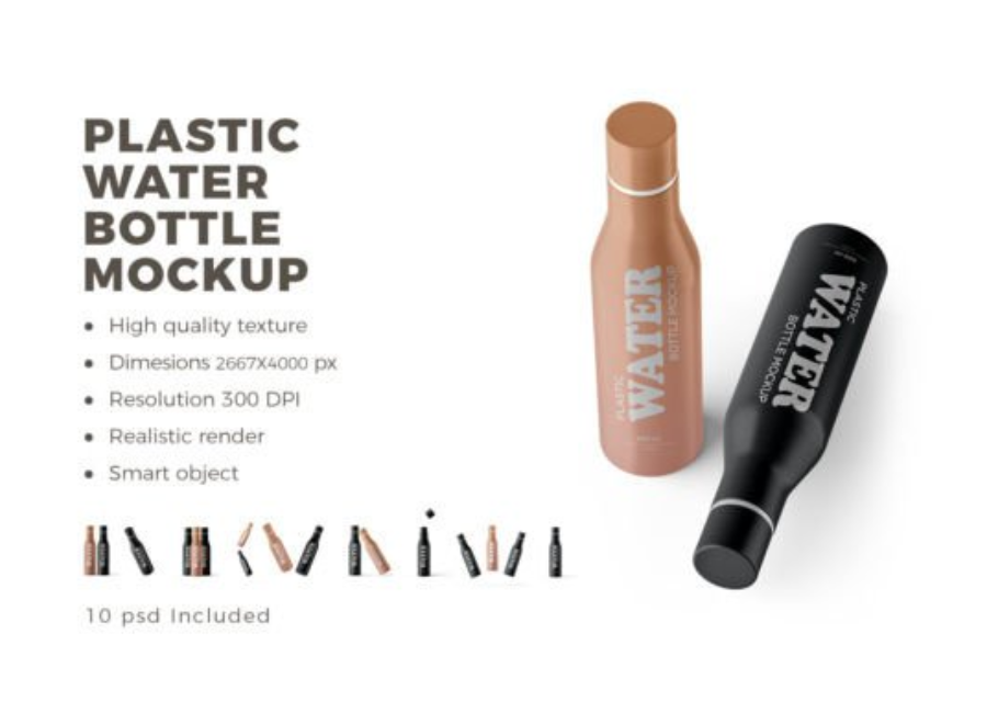 Not all mockups are created equal. When selecting a plastic water bottle PSD mockup, look for the following features: