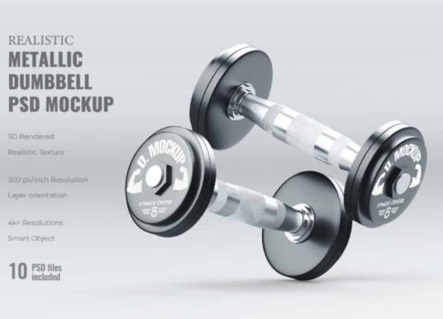 A premium Realistic Metallic Dumbbell PSD Mockup usually includes several essential features: