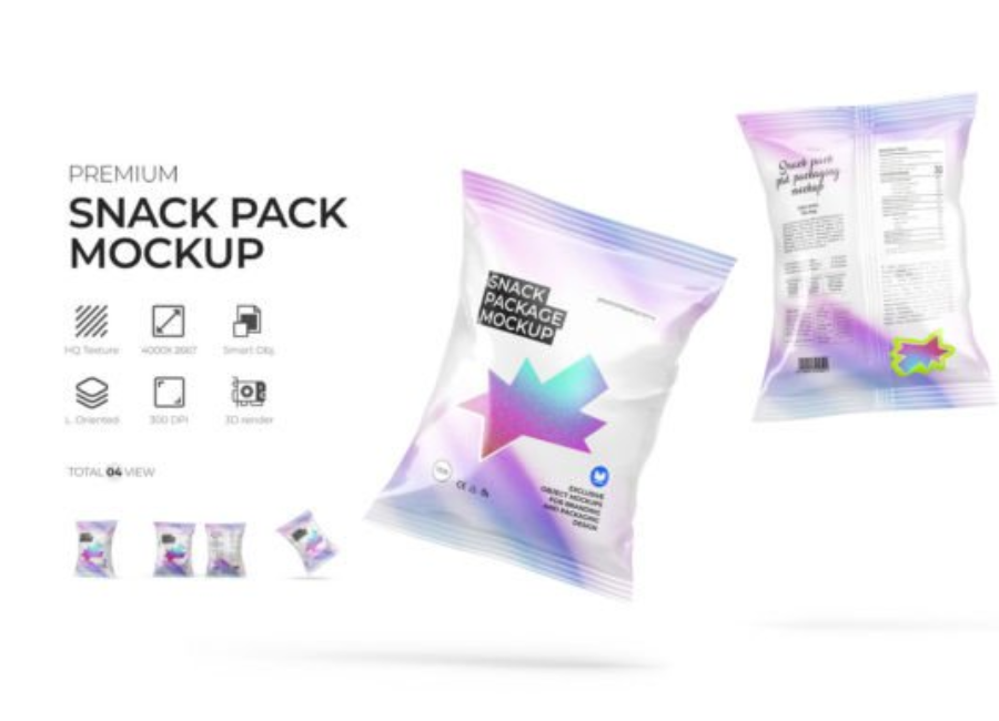 One of the key advantages of using a snack packaging mockup is realism. High-quality mockups are designed to replicate real packaging materials, including plastic, foil, kraft paper, or matte finishes. Details such as folds, creases, shadows, and highlights add depth and authenticity, making the design feel tangible and shelf-ready.