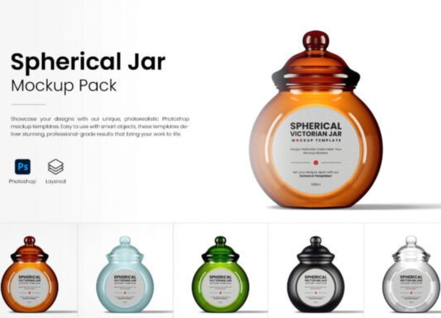 Mockups play a critical role in selling ideas. Before a product is manufactured, stakeholders need to see how it will look in real life. The Spherical Victorian Jar Mockup Pack is an excellent tool for product launches, investor pitches, and client approvals.