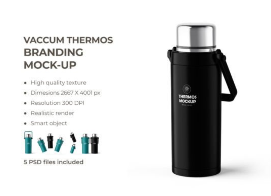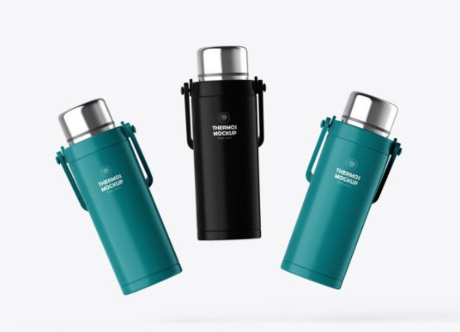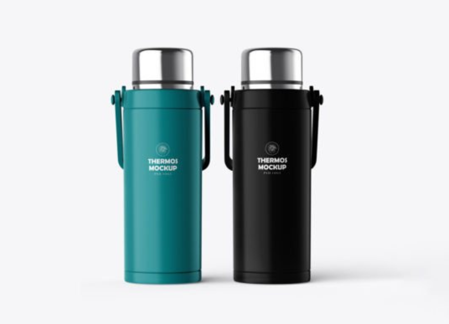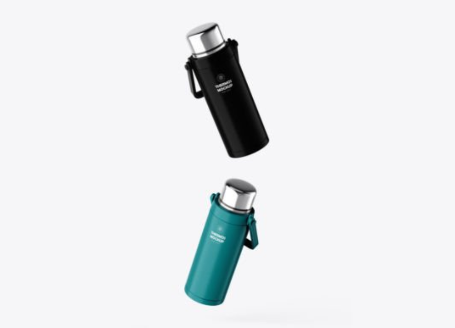 There are both premium and free sources from which designers can download thermos and water bottle mockups: