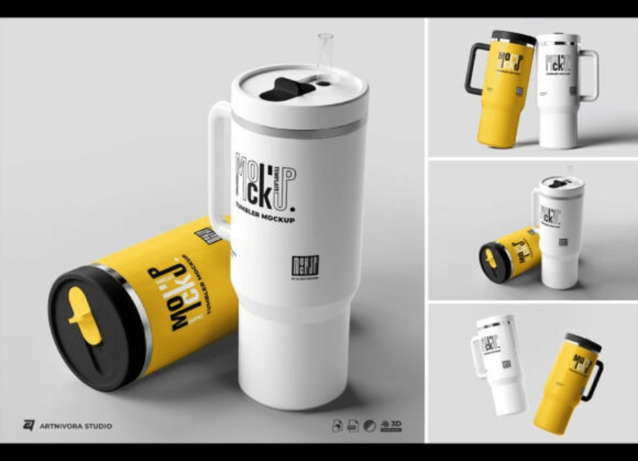 Tumbler mockup sets are widely used across various industries. Graphic designers use them to present their work to clients in a professional manner. Instead of showing flat designs, they can display how the artwork will look on an actual product.